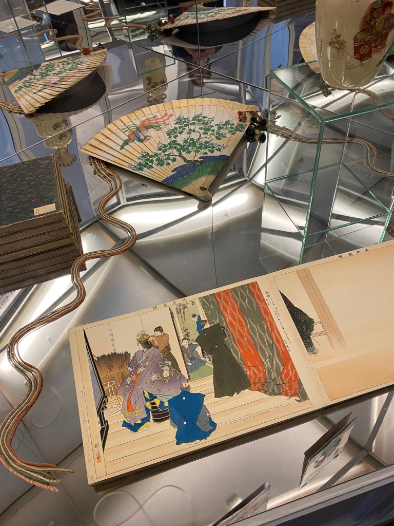 Complementing her talk was a display of curated objects from the MARKK’s own collection, giving attendees a rare glimpse into the material culture of Japanese theater. Items on view included authentic nō masks, makeup utensils, decorative accessoires such as hair pins, and kabuki-themed ukiyo-e prints. Together, they offered a tactile connection to performance traditions that have shaped Japanese cultural identity for centuries.