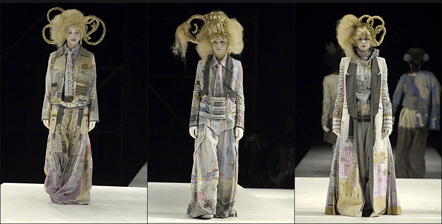 During his studies, Sakabe was already experimenting with visual influences drawn from Japanese popular culture. His graduation collection titled ‘20XX A/W Collection (@-@)‘ incorporated elements inspired by anime and manga aesthetics. Rather than simply referencing these media iconographically, he was interested in translating their visual qualities, particularly their flatness and graphic textures, into fabric, pattern, and tailoring. As he explained, animated images are essentially two-dimensional surfaces, making them surprisingly adaptable as textile textures and design motifs.