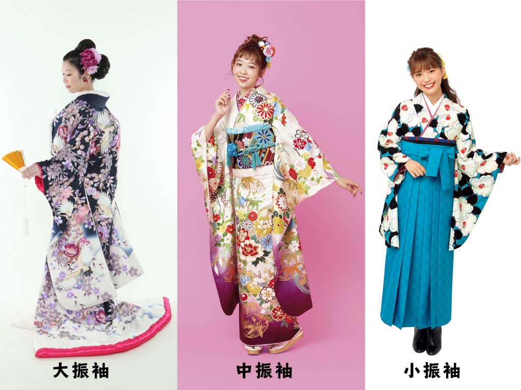 Sleeve lengths vary by occasion: longest for bridal wear (left), medium for Coming-of-Age Day (center), and shorter for graduation (right).Image source: http://aikah.com.