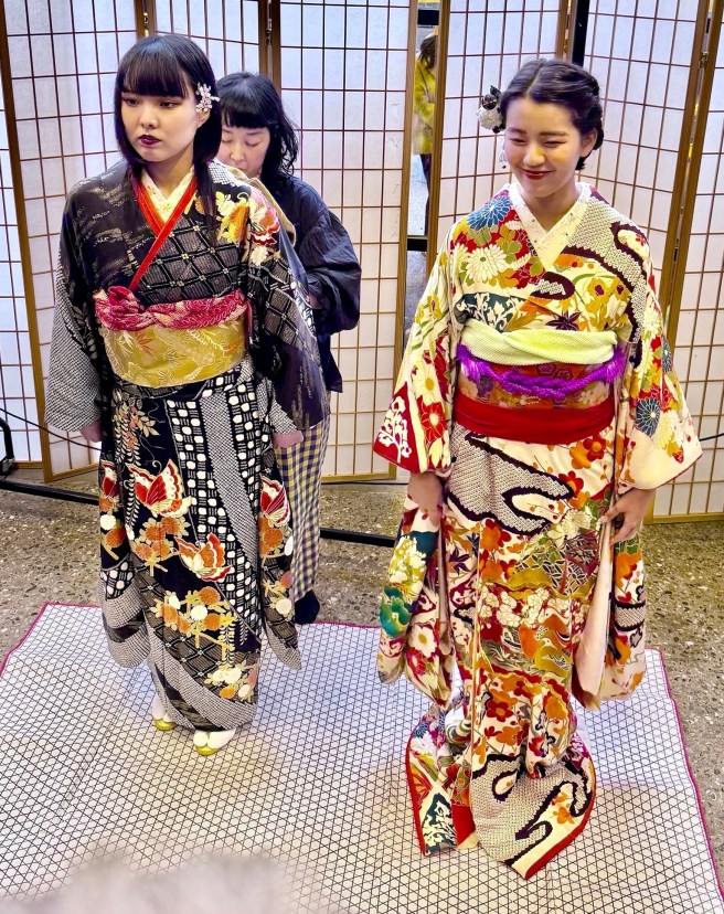 For the demonstration at the Yokimono Japanese Market, we showcased two contrasting styles of furisode: