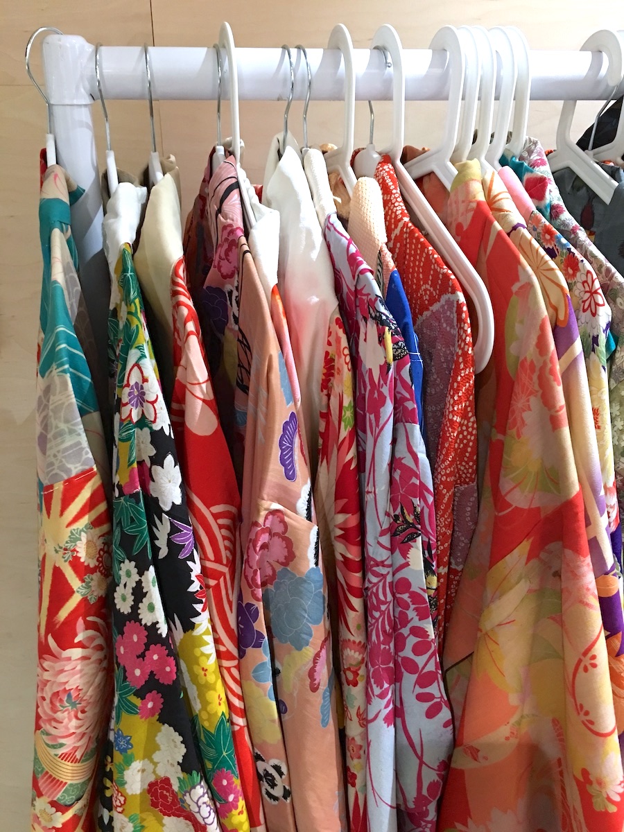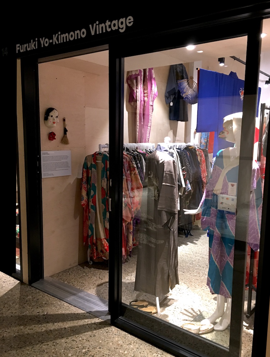Furuki Yo-Kimono Vintage focuses mainly on kimono from the Taishō period, a great time for kimono fashion with new innovations and aesthetics emerging out of the forward-looking and democratic social context of the 1920s. Sugawara-san also collects imperial and samurai families’ wartime propaganda kimono, as well as Japanese folk workwear and textiles. I highly recommend a visit to anyone with an interest in kimono culture, to have a browse through the collection and a chat with the friendly and very knowledgable Sugawara-san!